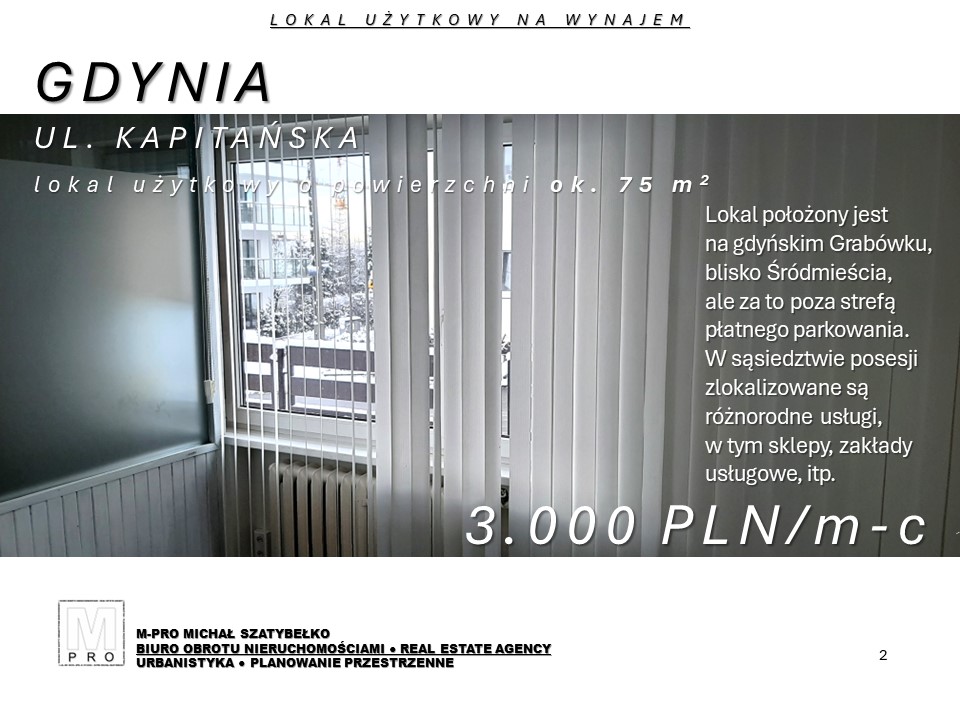 Lokal położony jest na gdyńskim Grabówku, blisko Śródmieścia, poza strefą płatnego parkowania.
